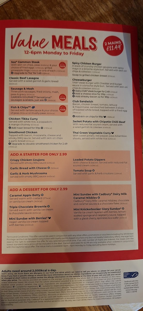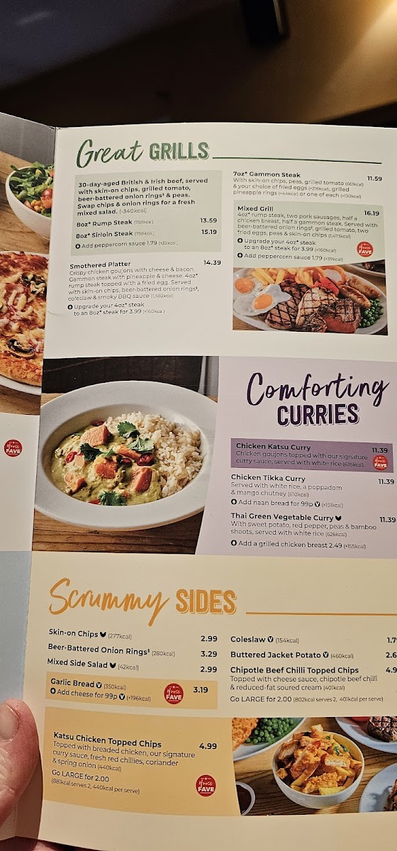 Vegetarian and vegan diners will find improved inclusivity in recent iterations of the menu, including plant-based burgers and meat-free curries. While the range isn't groundbreaking, it’s a solid step in the right direction for a traditional pub-style chain. The drinks list includes a good selection of beers, wines, and soft drink refills, and service tends to be prompt and friendly, especially during non-peak hours.